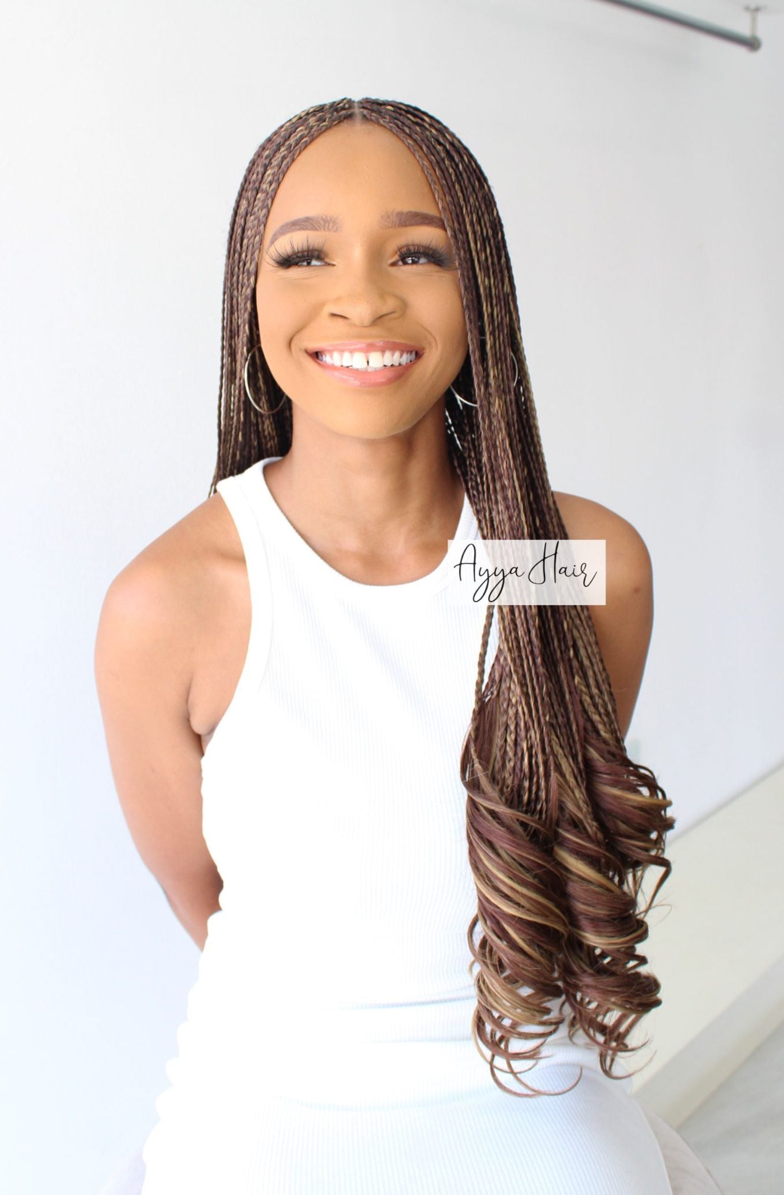 Our Honey Kissed Bronze French Curl extension is ideal for individuals looking to add warmth, depth, and dimension to their hair while embracing a rich and sophisticated aesthetic. This braid extension is a mix of chocolate brown and a hint of bronze colour. It is available in various lengths and can be used for different braid hairstyles to suit various occasions and preferences. This synthetic extension is expertly designed with finely crafted curls in a beautiful honey and bronze hue that adds warmth and sophistication to any hairstyle.